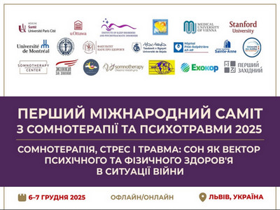 6–7 грудня 2025 року у м. Львові (BankHotel, вул. Листопадового Чину, 8) відбудеться Перший Міжнародний Саміт з сомнотерапії та психотравми,