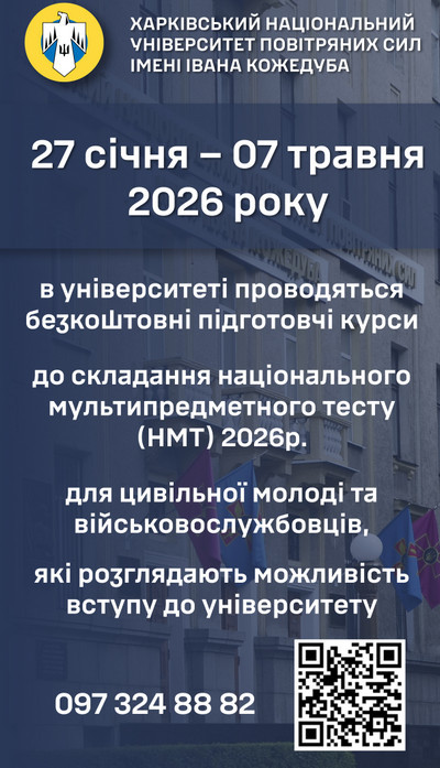 Для вступників, які планують пов’язати своє життя з військами, університет організовує фахову підготовку до національного мультипредметного тесту (НМТ-2026). Курси допоможуть систематизувати знання та впевнено скласти іспити.