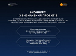16 січня 2026 року о 12:00 у Пресцентрі Укрінформ відбудеться брифінг щодо конкурсу з визначення проєктів з утвердження української національної та громадянської ідентичності,